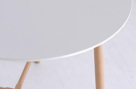 白い天板がアクセントになったブナ材の丸テーブル「209EB」