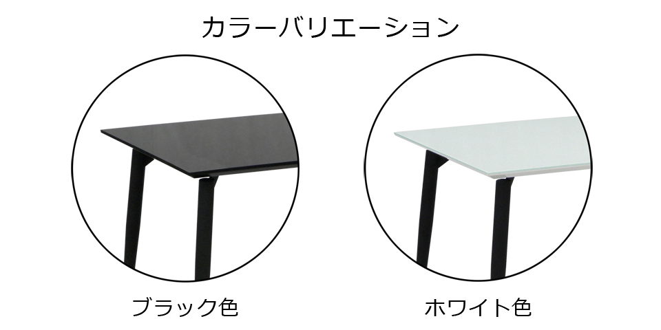 ガラス天板はブラック色とホワイト色の2色からお選びいただけます。6mm厚の強化ガラスを使用を使用しています。