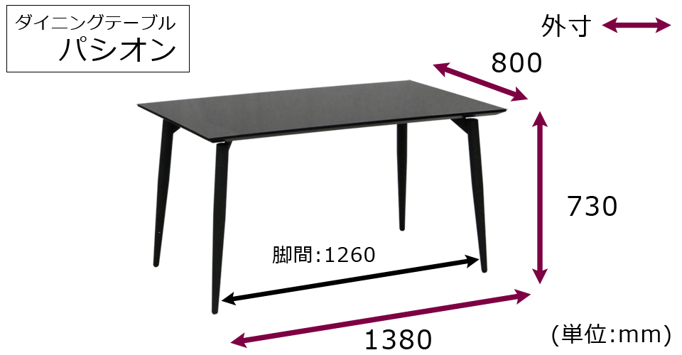 ダイニングテーブル「パシオン ガラストップ」幅138cm 全2色