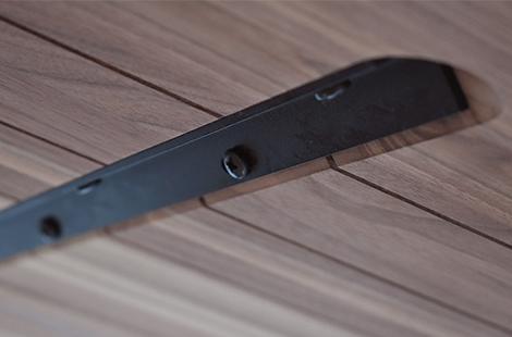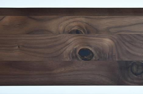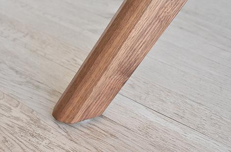 ウォールナット無垢材を贅沢に使った天板。素材を活かした天然木の家具は使用していくたびに愛着がわいていきます。オイル仕上げで風合いも楽しめます。※オイル仕上げの商品は定期的なメンテナンスをおすすめします。天然木を使用しているため、木目は一点ごとに異なります。