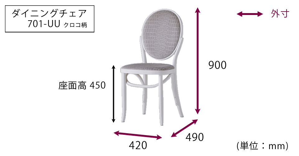 秋田木工 ダイニングチェア「No.701-UU」 ブナ材ホワイト色 座面/布クロコ柄