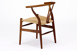 CH24はアームと背もたれを一体にするという、それまでの椅子デザインに見られなかった斬新なデザインです。そしてこの曲木製のアームに安定性と心地よい使用感を与えるのが、印象的なY字形の背もたれ。この形状からYチェアと呼ばれるようになりました。