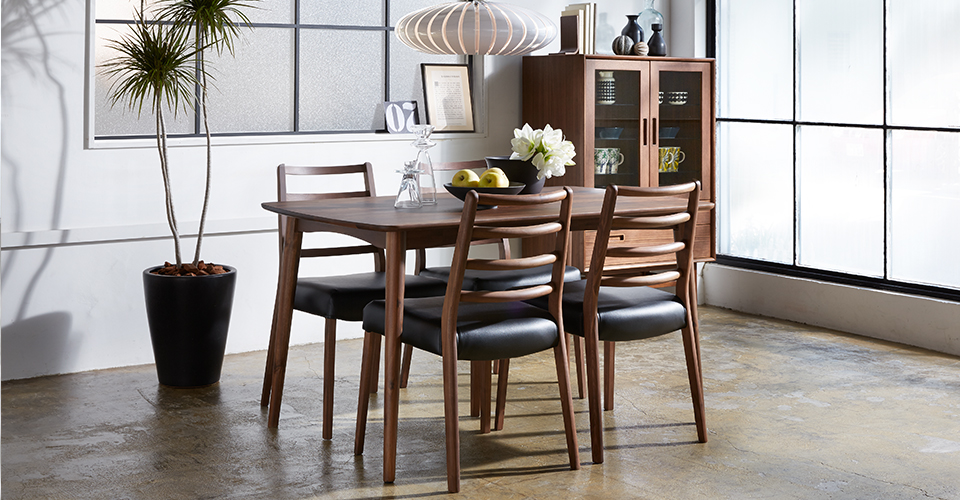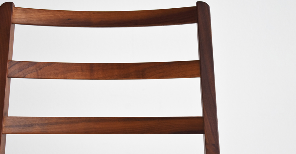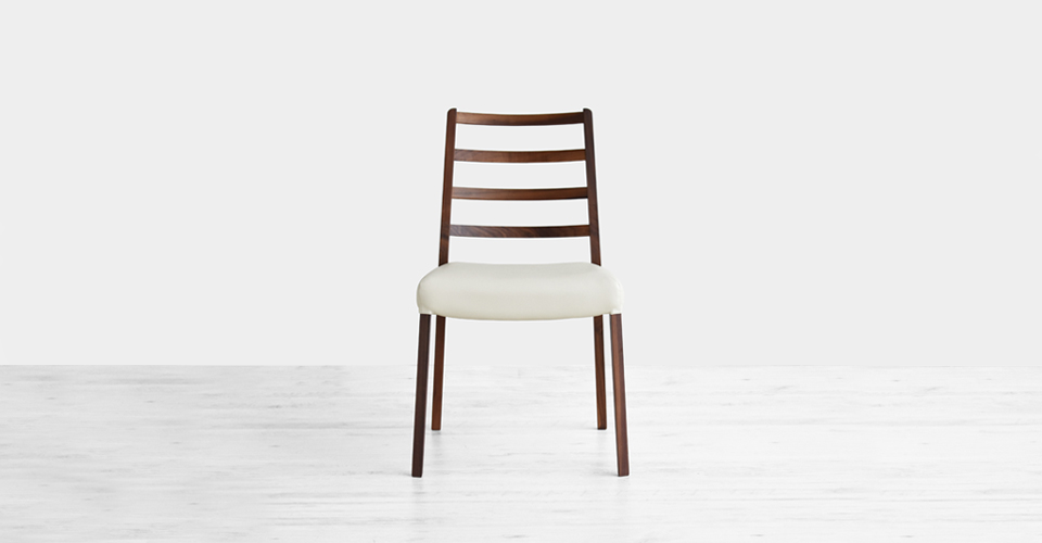 無垢集成材を使用した背もたれはウォールナット材の木目が高級感のある印象を与えてくれます。