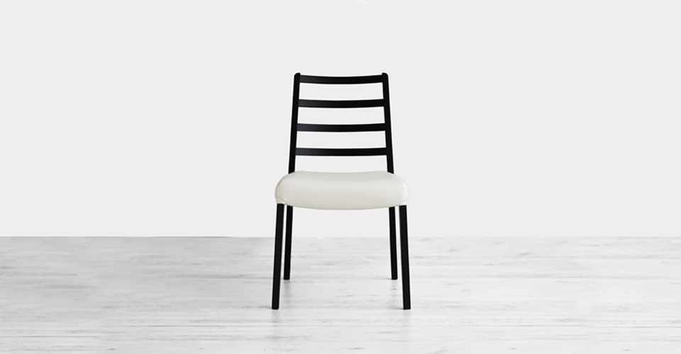 ウォールナット材の無垢材を使用した天然木のあたたかみを感じるカバーリングタイプのダイニングチェアです。座面はPVC素材のブラックとアイボリーの2色から選べ、オプションでPVCの座面の上に布カバーを取り付けることができます。