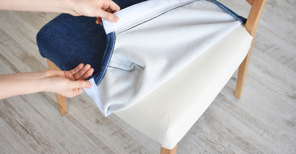 PVCの座面の上に別売りの布カバーを取り付けることができます。季節に合わせて変えたり、一脚ずつお好きな色をあわせたり、自由にカラーコーディネートをお楽しみください。※画像はイメージです。