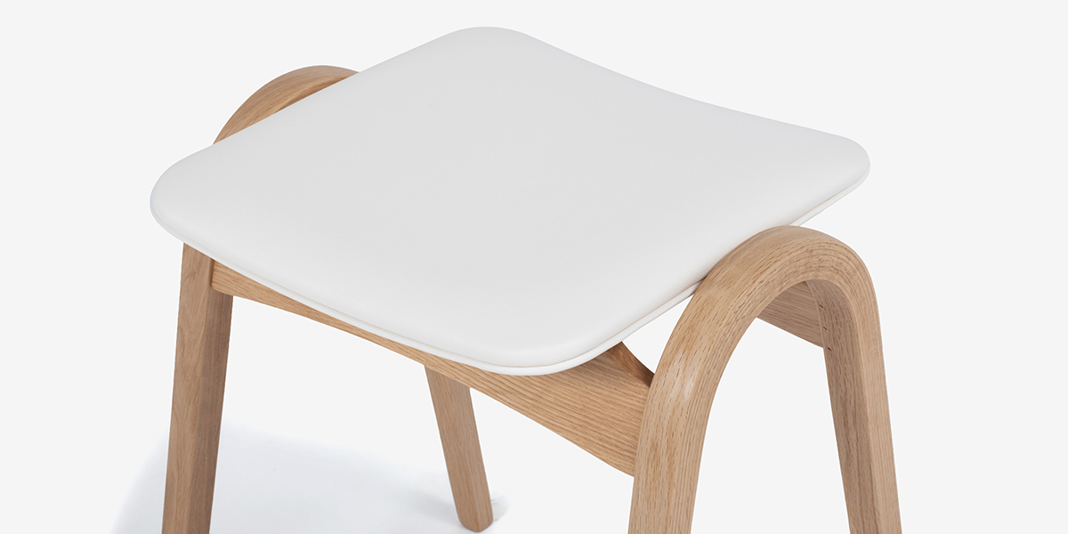使用しない時はスタッキングして収納できることが「No.202」の最大の魅力です。背もたれがないことで重ねてテーブルの下にしまえます。狭い日本の住宅事情を踏まえたアイデアです。