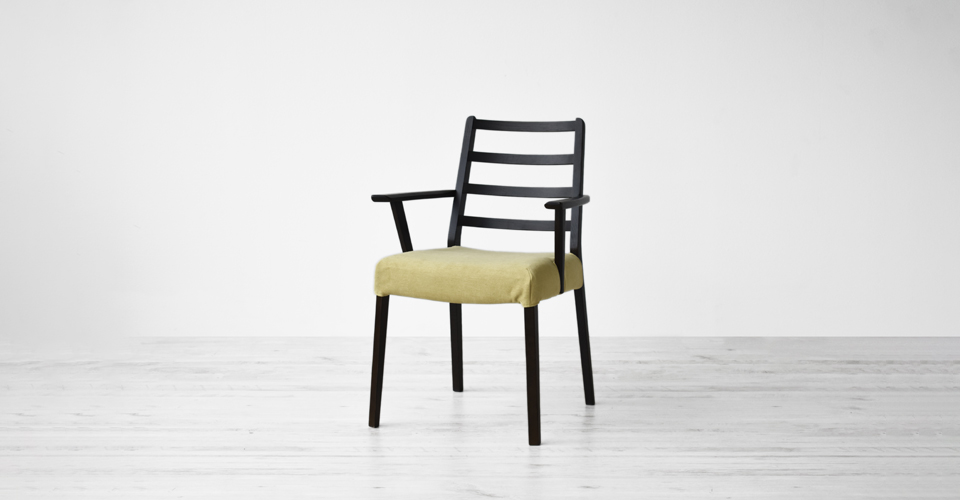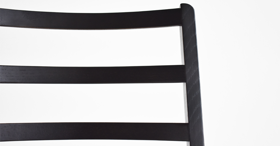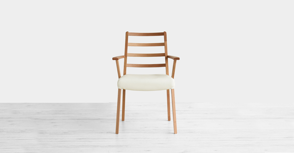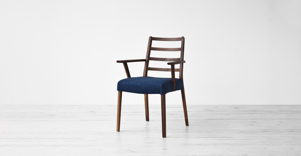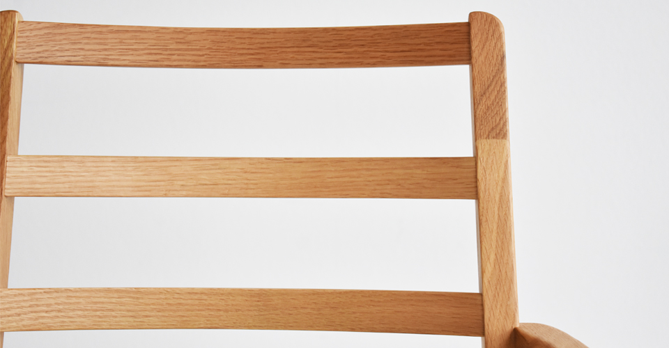 無垢集成材を使用した背もたれはウォールナット材の木目が高級感のある印象を与えてくれます。