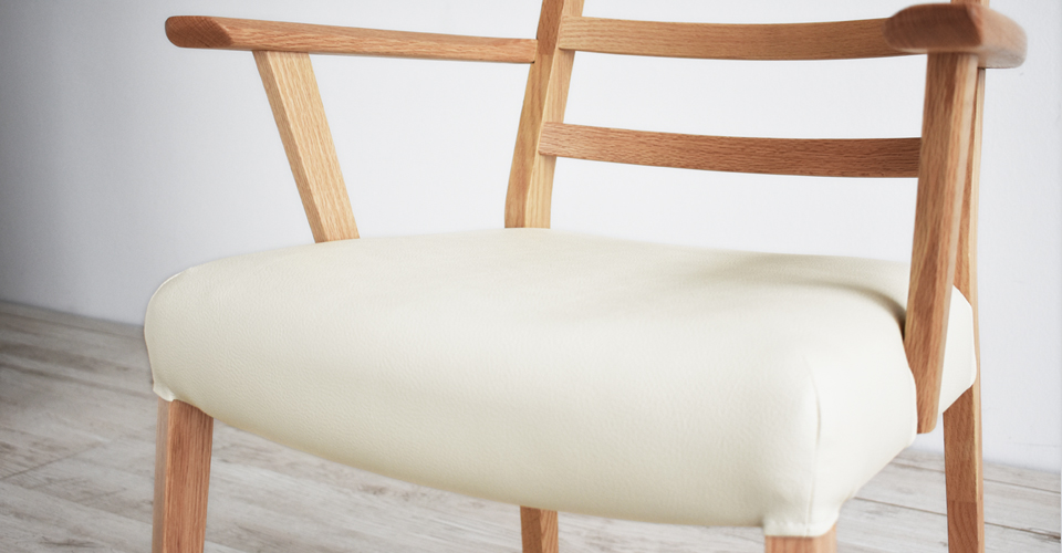 ウェービングテープとウレタンで座面を構成することで、無垢材を使用しているにもかかわらずとても軽く椅子を持ち上げての移動も楽にできます。
