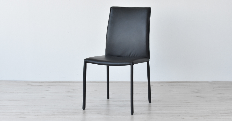 肌触りの良いレザーを使用した、モダンでスタイリッシュな総本革(レザー)張りチェアです。ダイニングセットとしてはもちろん、一脚のチェアとして取り入れてもその素材感がコーディネートを引き立てます。