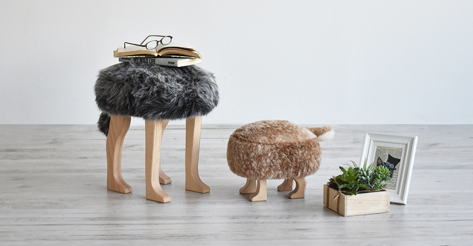 ふさふさの座面、丁寧に仕上げられた前脚と後ろ脚。そして、可愛らしいしっぽのついたアニマルスツールはお部屋のアクセントにぴったりです。ソファのオットマン、子供用のチェアや玄関先で靴を履いたり脱いだりする際の腰掛けなど、様々なシーンで活躍します。SサイズとLサイズからお選びいただけます。