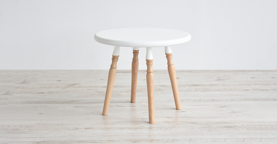 伝統的なウィンザースタイルチェアの脚のデザインをモチーフにしたサイドテーブル「500EB」ホワイト色