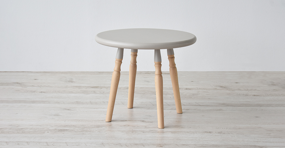 伝統的なウィンザースタイルチェアの脚のデザインをモチーフにしたサイドテーブル「500EB」ウォームグレー色