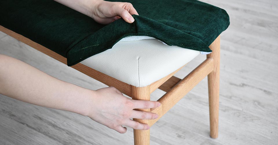 ベンチ「シネマ 幅106cm」用の替えカバーです。PVCの座面の上から脱着テープで固定するだけですので、簡単に脱着できます。全9色のバリエーションがありますので、クリーニングや模様替えなどいろいろな用途で気軽にイメージチェンジしていただけます。