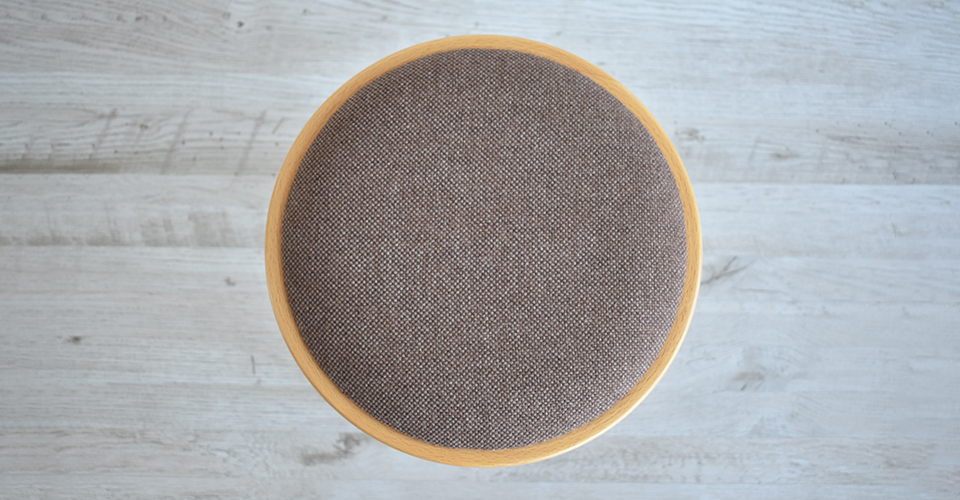 あたたかみのあるブラウンの布張り座面です。やさしい座り心地です。