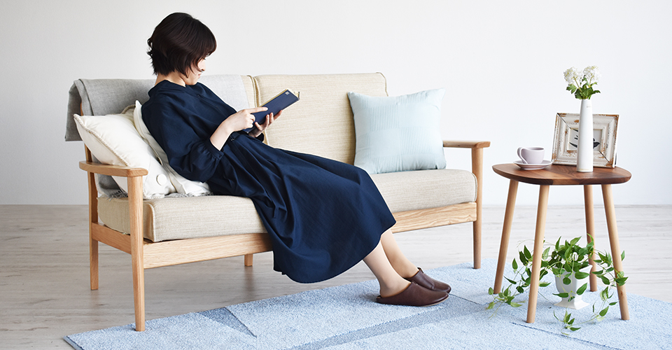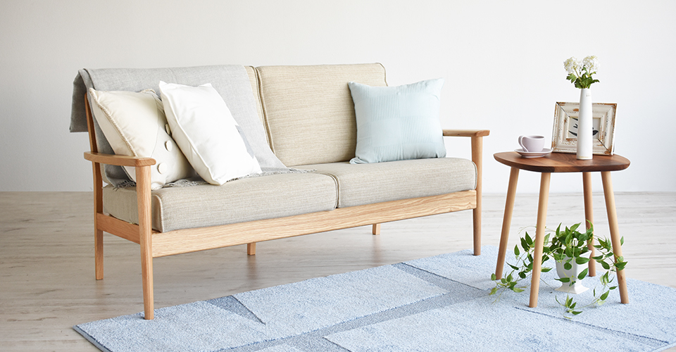 無垢材の質感が活きるコンパクトなソファ「シネマ」