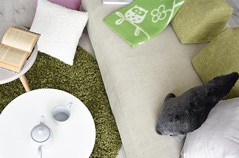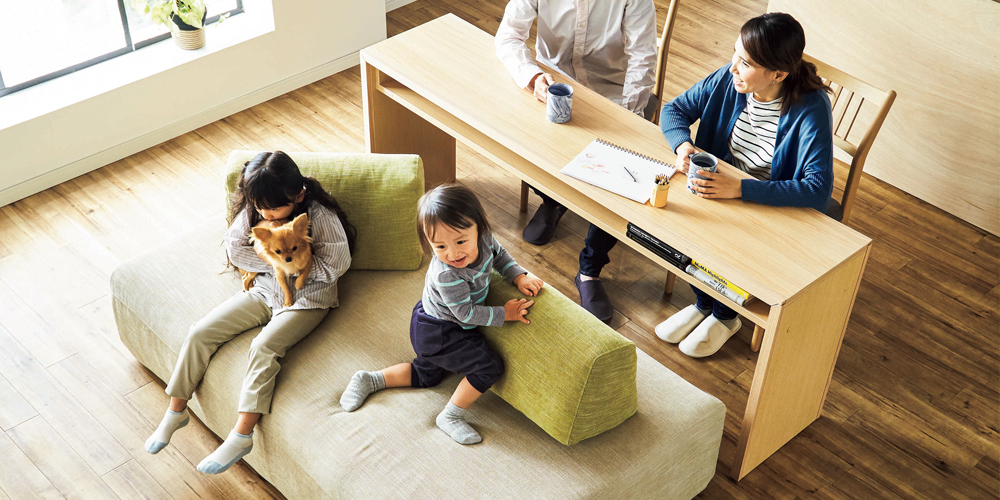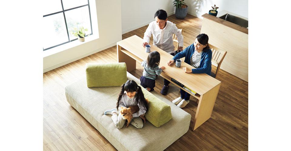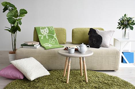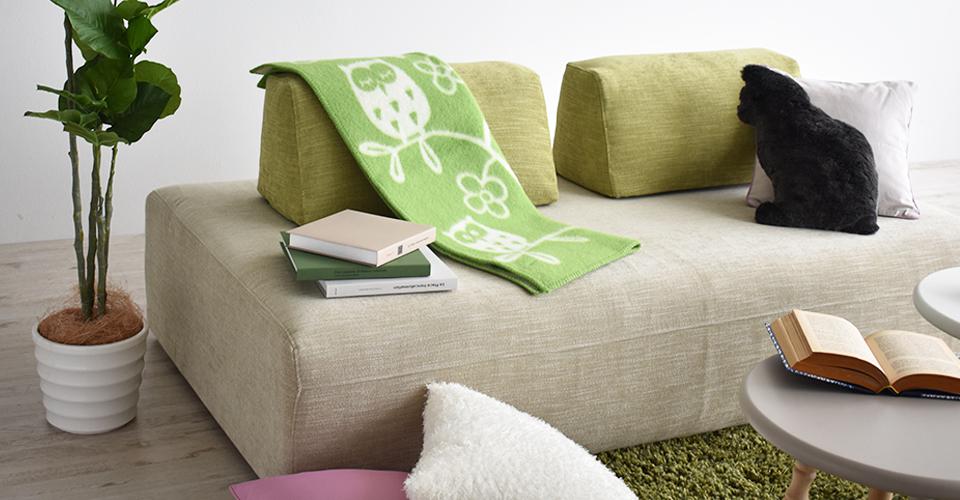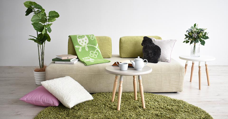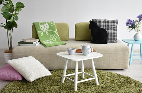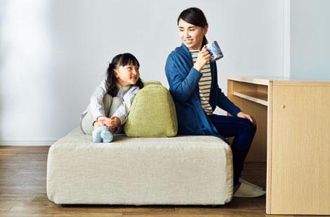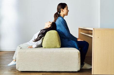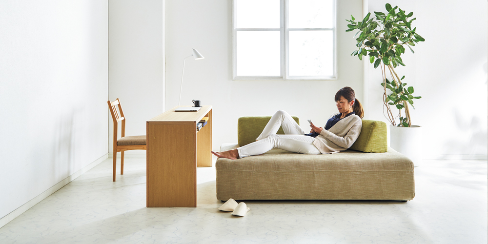 ソファに腰掛けておしゃべりしたり、本を読んだり、寝転んだり、自由度の高い使い勝手のソファです。※テーブルは別売りです。