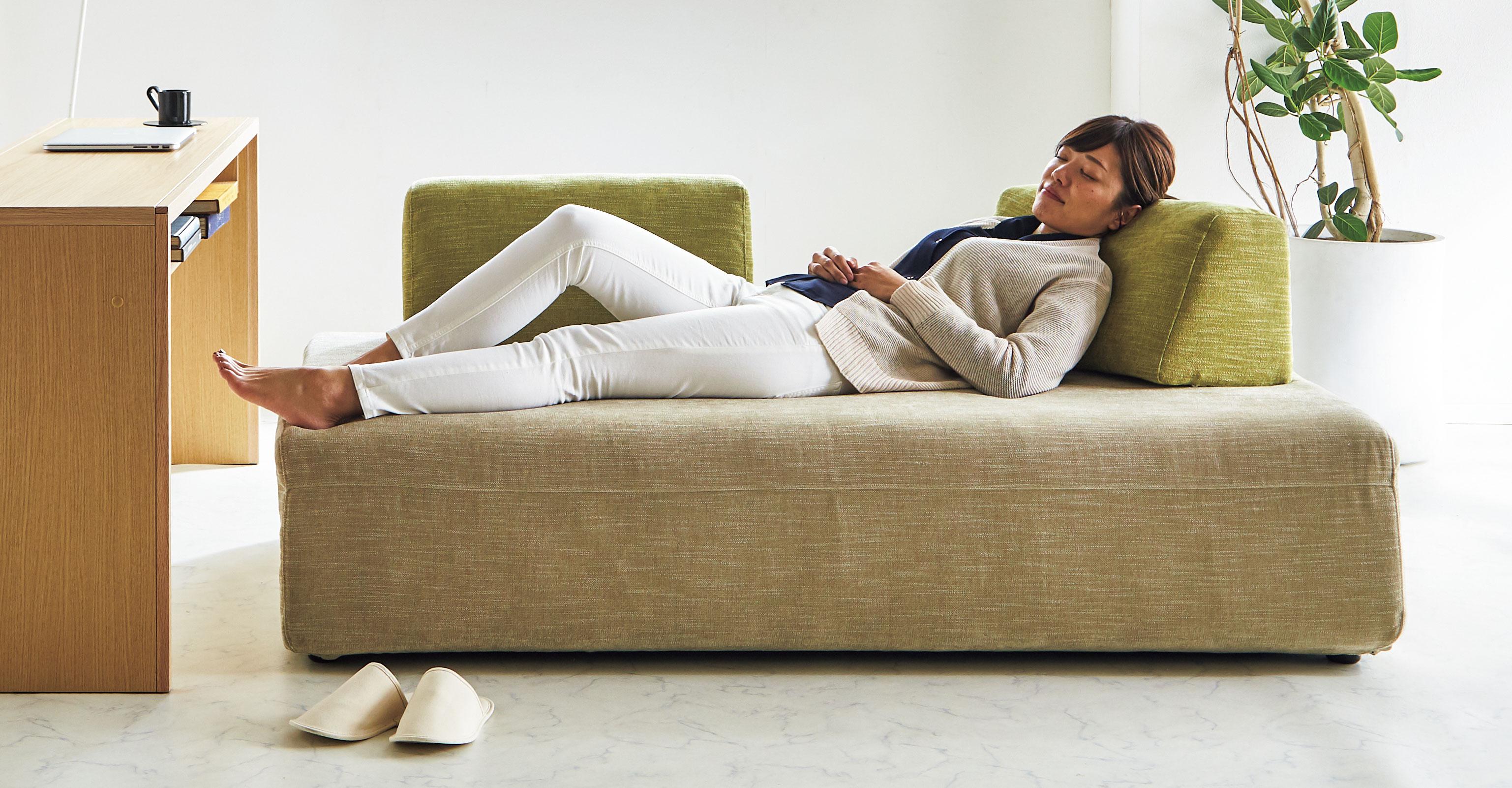 リラックスしたいときは背クッションを枕のかわりに。足を伸ばして座ったり、寝転んだり、いろいろなスタイルで使用可能です。デイベッドとしても利用できます。※画像はイメージです。