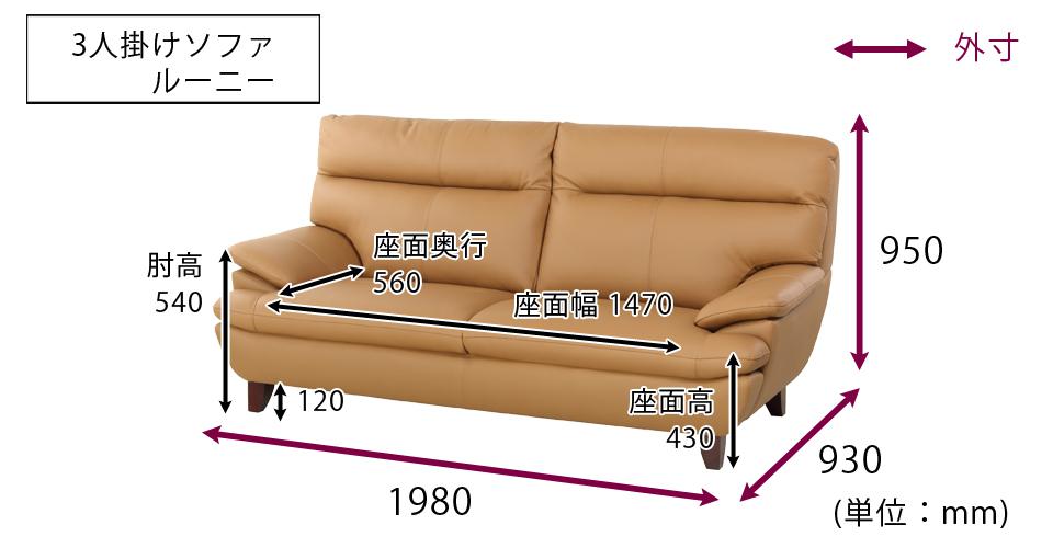 ソファ 3人掛け「ルーニー SD-344」幅198cm 半革キャメル色 #M-02