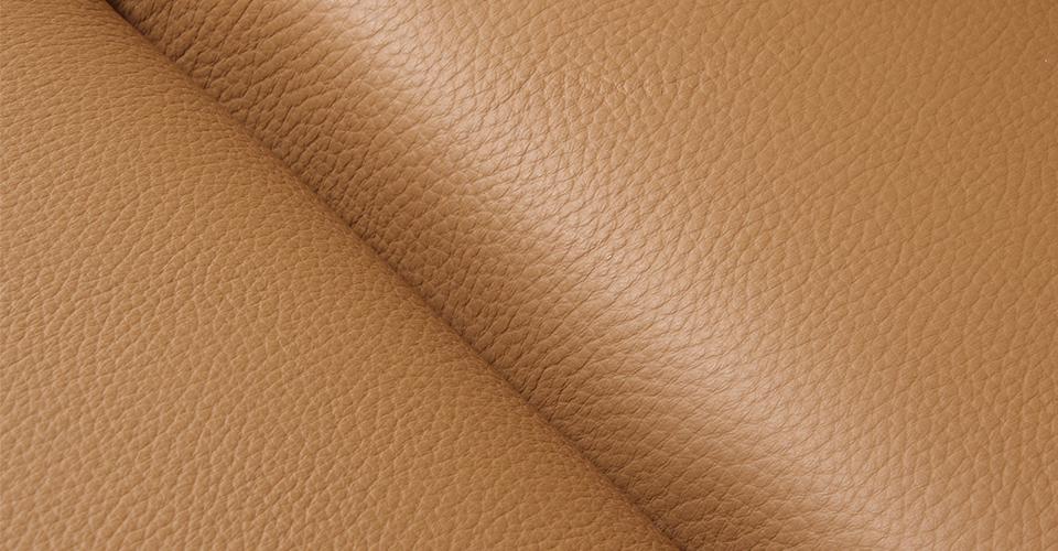 張地は本革と合成皮革を併用しています。座面、背もたれ、肘かけ等の体が触れる部分には本革を、背面、側面、座面下部には合成皮革を使用しています。本革は1.3mm〜1.5mm厚のしっかりとした厚革で高級感を感じます。