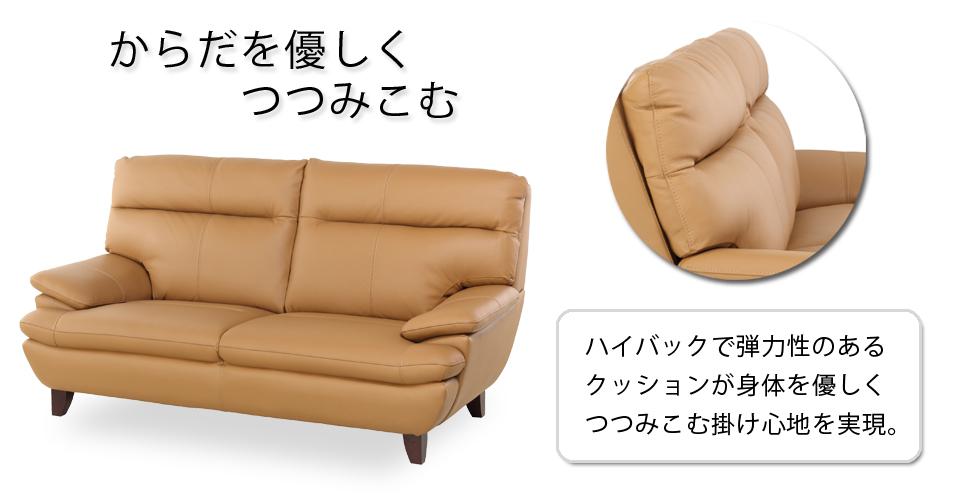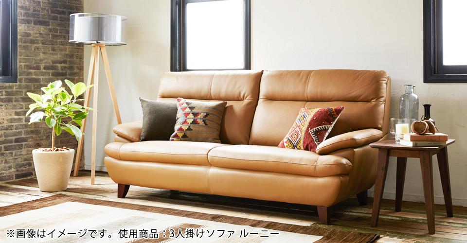 ※画像は3人掛けソファ(幅198cm)・半革キャメル色 (#M-02)を使用したイメージです。