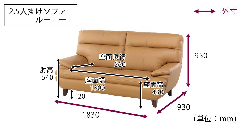 ソファ 2.5人掛け「ルーニー SD-344」幅183cm 半革キャメル色 #M-02