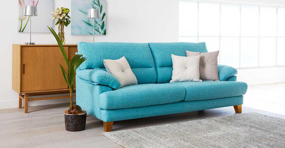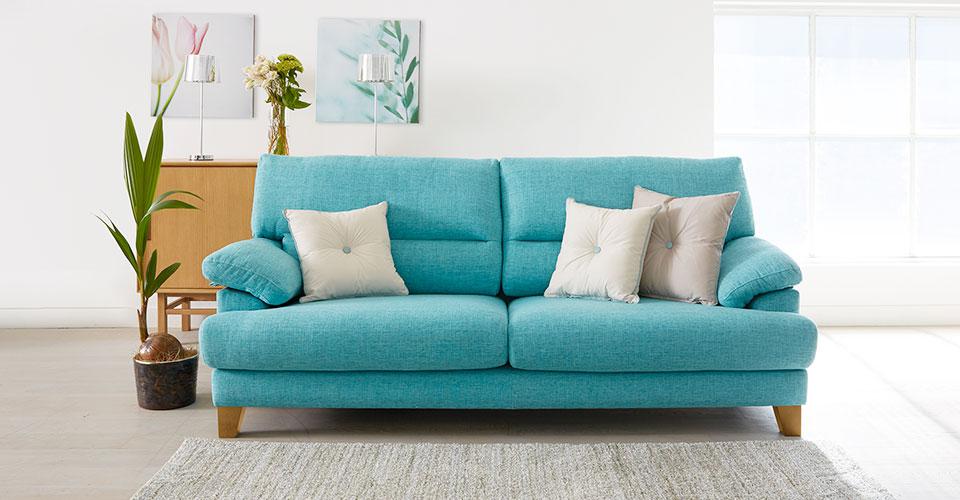 ラブソファ「アクア SD-341C」2人掛け 布#FG220-11D ブルー色 脚部全2色