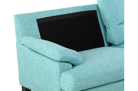 ローワイドの肘かけは横になった時に枕のように頭をサポートします。背クッションにはポリエステル綿を使用。包み込まれるような柔らかな座り心地です。