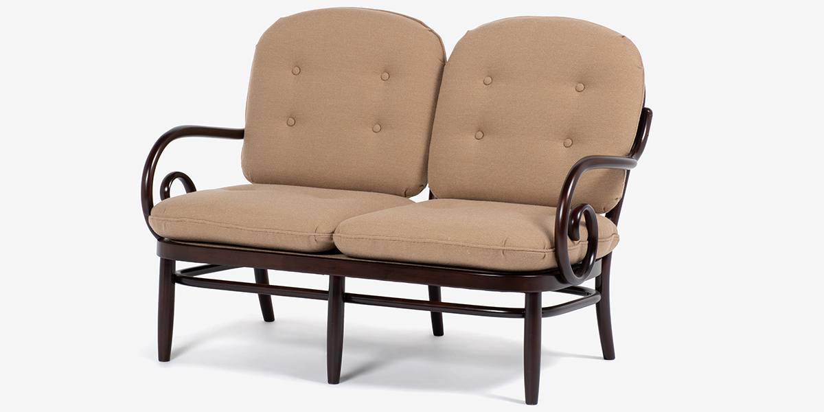 レトロモダンなあたたかい雰囲気が漂う曲げ木のソファです。 ウォールナット色の落ち着いた色のフレームや、丸みのあるデザインは和の空間にも馴染みます。 クッションのくるみボタンなど細部までこだわった魅力あふれるソファです。