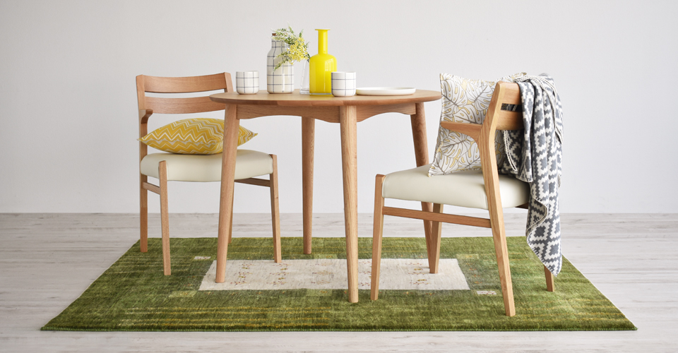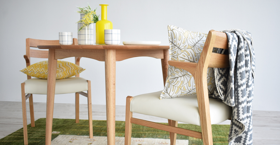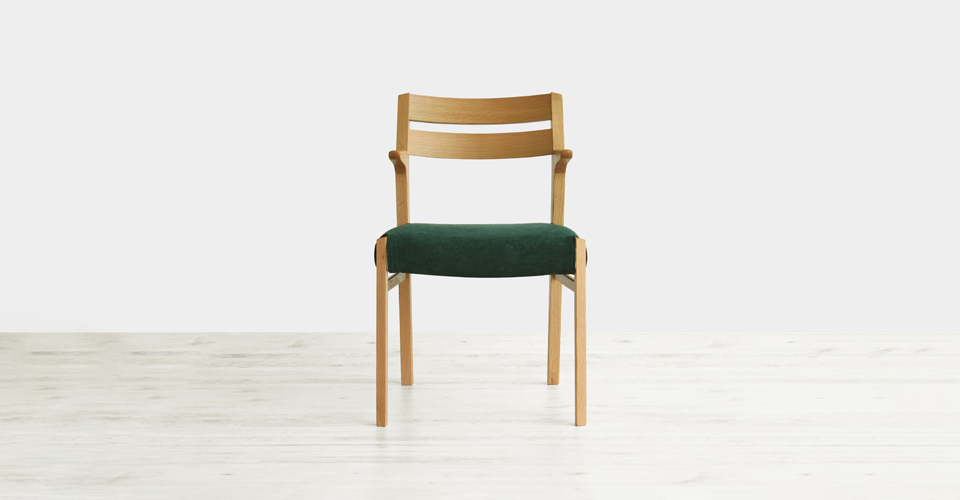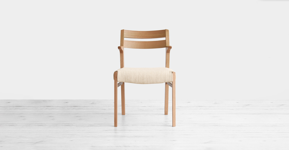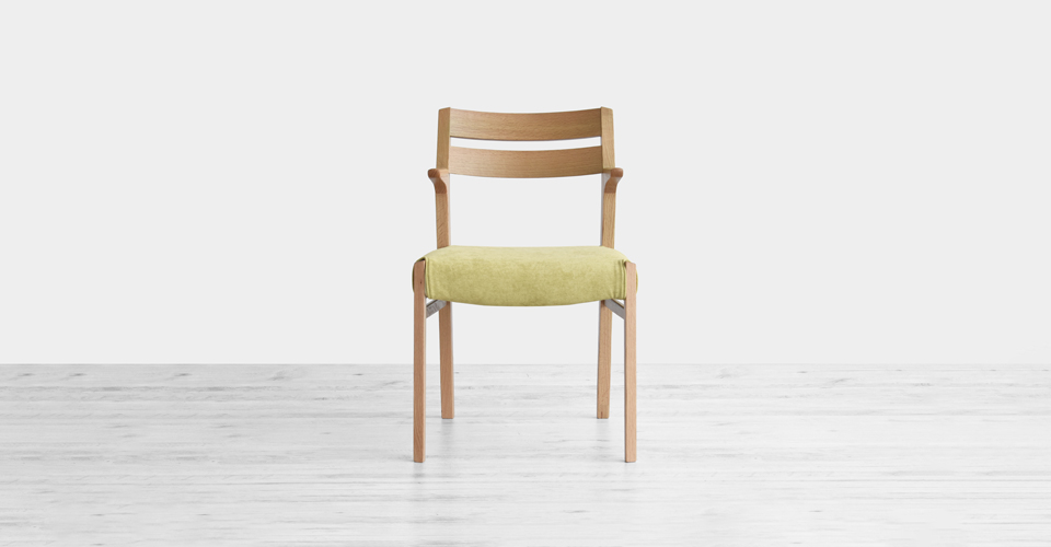 天然木の素材感を活かした、立つ・座るのしやすい半肘のダイニングチェア