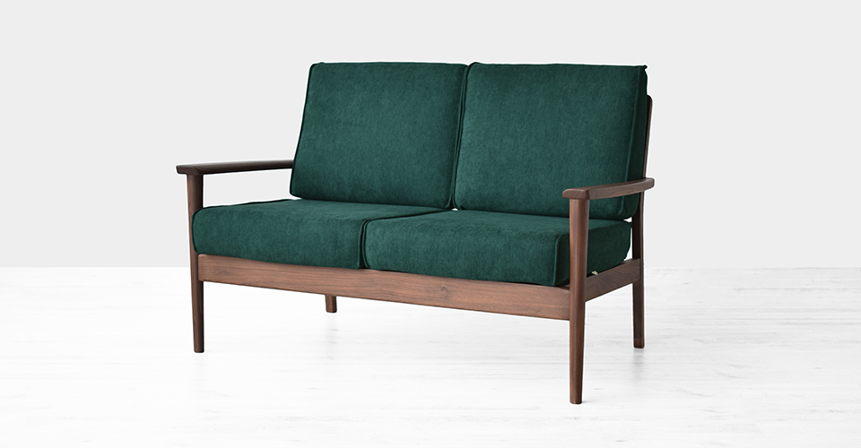 無垢材の質感が活きるコンパクトな2人掛けソファ「シネマ」