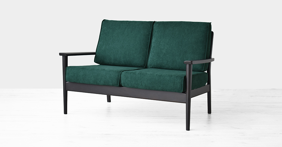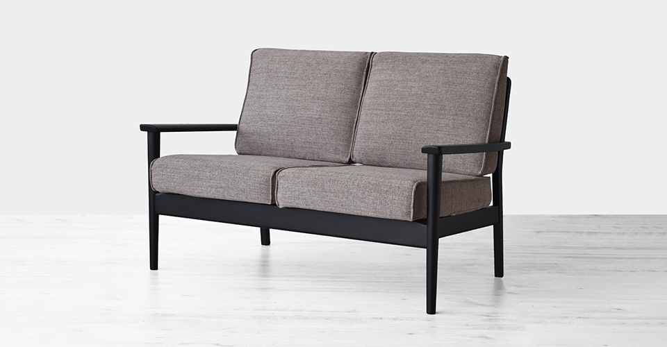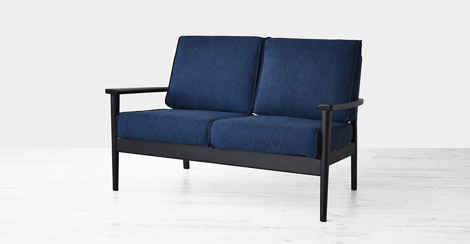 無垢材の質感が活きるコンパクトな2人掛けソファ「シネマ」