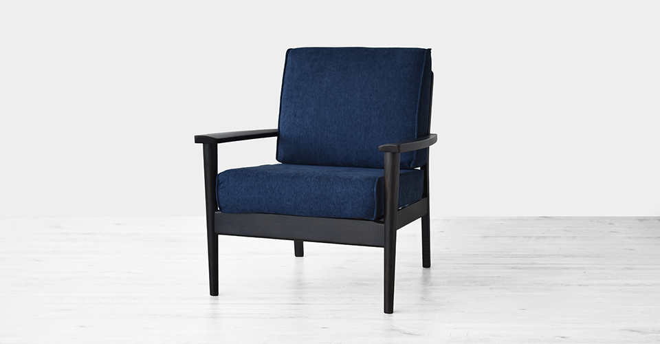 レッドオーク無垢材を贅沢に使用したシネマシリーズのアームチェアです。コンパクトな佇まいで、スペースが限られたお部屋にもぴったり。木部のダークカラーが空間を引き締め、落ち着いた大人の空間を演出します。