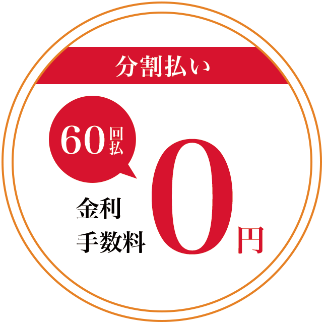 ショッピングクレジット分割払いの金利手数料を、最大60回払いまで無料で承ります。