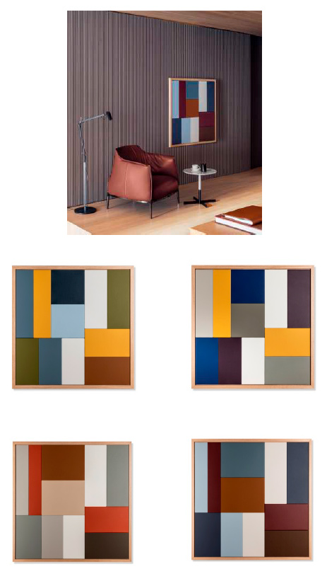 豊かな色彩を持つPelle Frau® レザーを熟練の職人によって巧みに加⼯した装飾画。インテリアに調和しやすいカラートーンで、あらゆる居住空間に華を添えます。