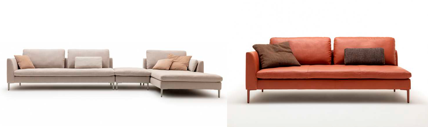 「MIO COLORE = 私のカラー」を意味するソファ「MIOKO」。脚部はスチールクロームのほかに、全体を同色系に演出できるよう、ロルフベンツのソファコレクションでは唯一、脚部もソファ本体と同色の7種のカラーから選べ、より洗練された印象に。間取りやライフスタイルに合わせて、クッションのタイプや張地のカラー、座面のサイズ、さらにはヘッドレストのオプションなどもカスタマイズが可能。クッションは、しっかりとした張りのある「クラシック」とソフトでカジュアルな「ラウンジ」の2タイプです。シンプルかつエレガントなデザインで、居住空間を豊かに彩ります。