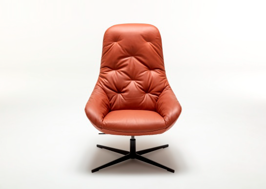 座面に丁寧に施されたキルティングは、ヴィヴィットな印象と、ソフトな座り心地を提供します。「MEG」と同様、人間工学に基づいた独⾃のロッキング機能と、高さ調節で実現した快適な座り心地が魅⼒の高級感溢れる、回転式ラウンジチェアです。
