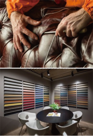 最高級の革を使用し、彫刻のように優美な家具を生み出す、イタリアを代表するファニチャーブランド、ポルトローナ・フラウ。伝統と革新を⼤切にし、常に進化を続けるその哲学は、原氏が表現する繊細な美意識と深く
