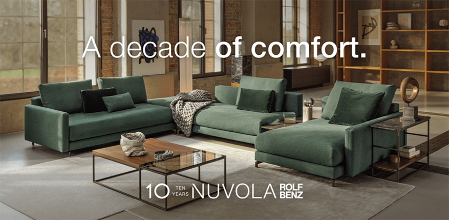 ドイツの高級家具ブランド「ROLF BENZ(ロルフベンツ)」を代表するソファ「NUVOLA(ヌヴォラ)」が、誕生10周年を迎えました。これを記念し、現在、ロルフベンツ東京および⼤塚家具全店舗にて、期間限定のアニバーサリーキャンペーンを実施しています。
