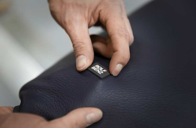 ロルフベンツのレザーは、ブランド専用に開発された技術で加⼯されています。最新のレーザースキャン技術を用いて一枚ごとに検品し、傷やナチュラルマークの位置を判別。シートクッションやアームレストなど目に触れる部分と、ソファ下など目⽴たない部分で最適に使い分けています。こうして天然素材ならではの個性を生かしつつ、常に高い完成度を実現しています。