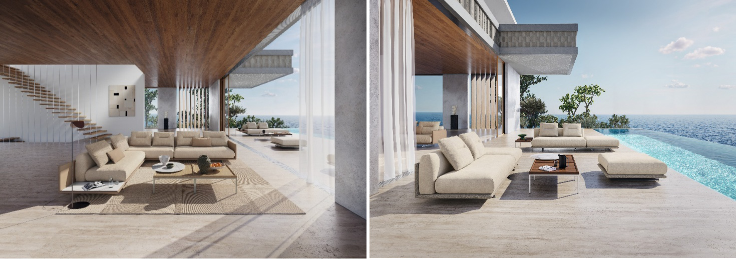 屋内空間の上質さをそのまま屋外へ拡張する、画期的なモジュラーソファ