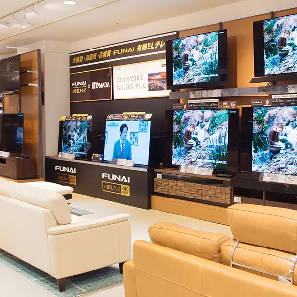 ヤマダデンキと連動した価格を店頭に表示しています。電子プライスで他店価格にタイムリーに対応し、魅力あるプライス表示に挑戦しています。