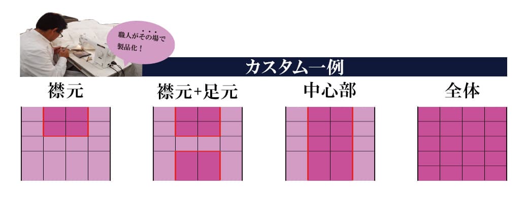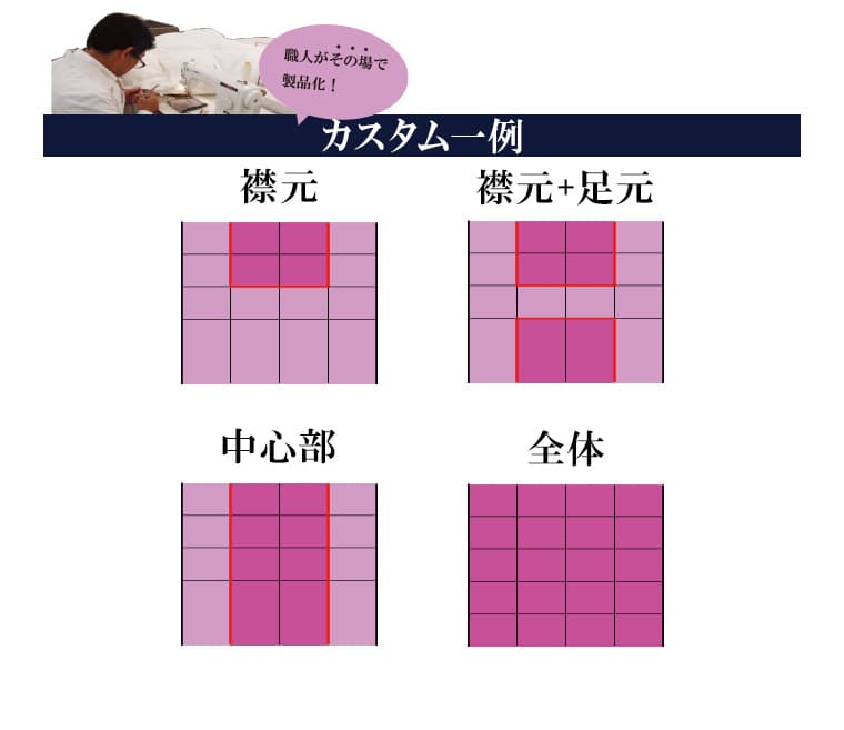 期間中は羽毛布団を製造している職人が、お客様のお好みの部分に羽毛を増量させていただく「カスタムオーダー」を追加料金なしでお受けいたします。