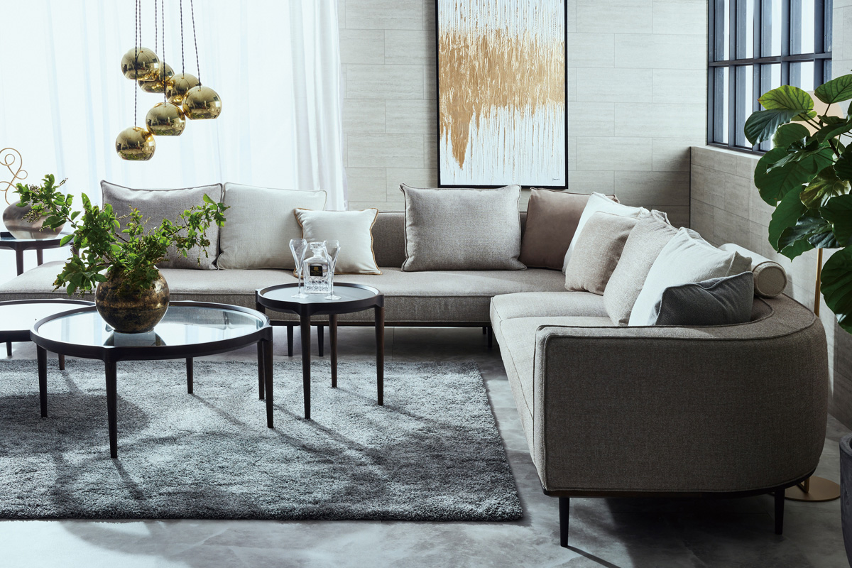 丸みのある優しいデザインのカウチソファ