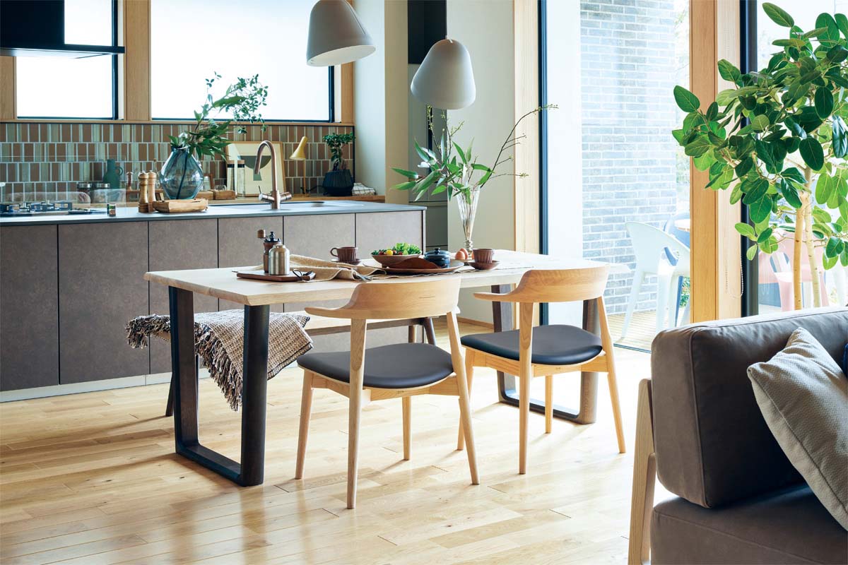 天然木ならではの温もりや素材感を感じるダイニングテーブル
