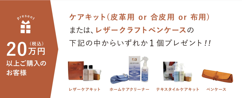 浜本工芸の製品を税込20万円以上のご成約で、ケアキットまたは、レザークラフトペンケースの中からいずれか1個をプレゼント!