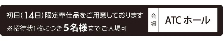 ※招待状の枚数に限りがあるため、なくなり次第終了とさせていただきます。
