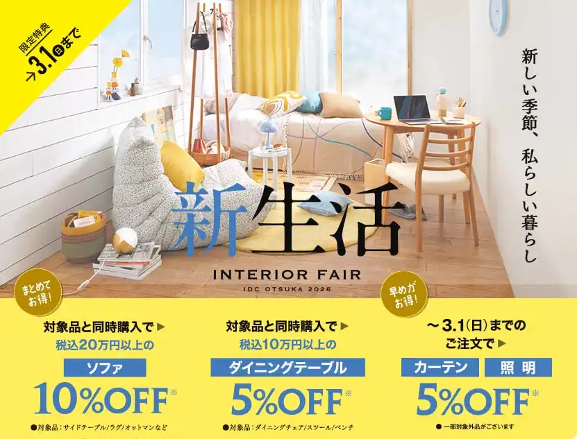 また、今なら「新生活インテリアフェア」も同時開催中。