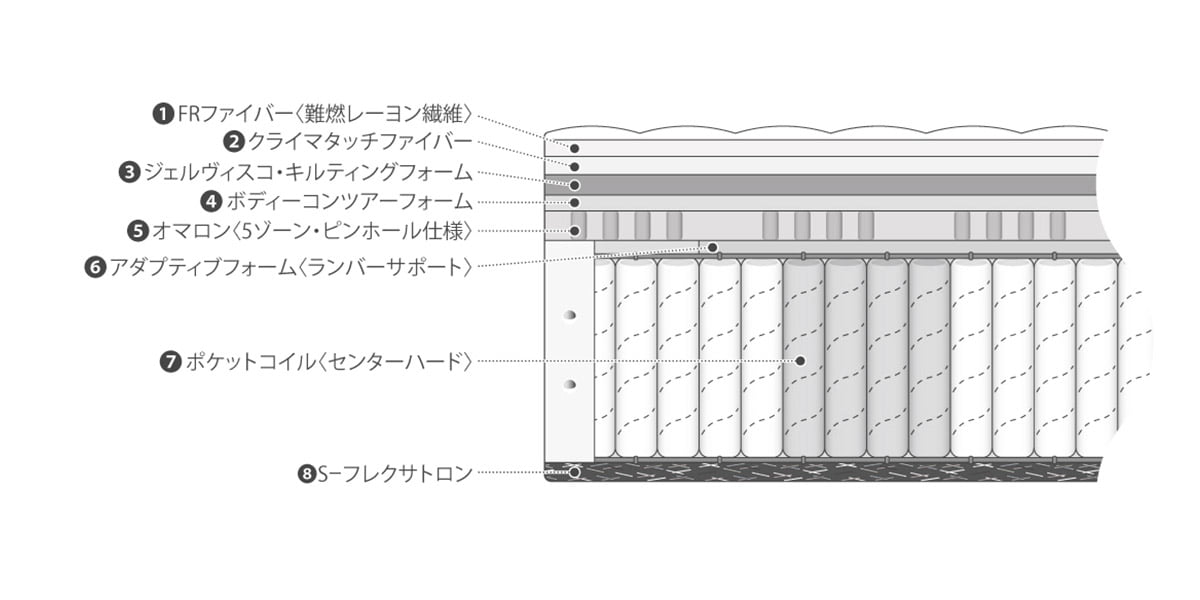 上層部には、復元力のある高感触ウレタンの「GEL-VISCO」を採用により、さらに安定感のある寝心地を実現。