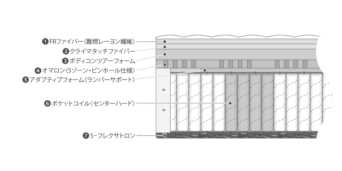 一つひとつ独立して身体のラインにフィットするポケットコイルを「センターハード仕様」にし、腰部をしっかりサポート。