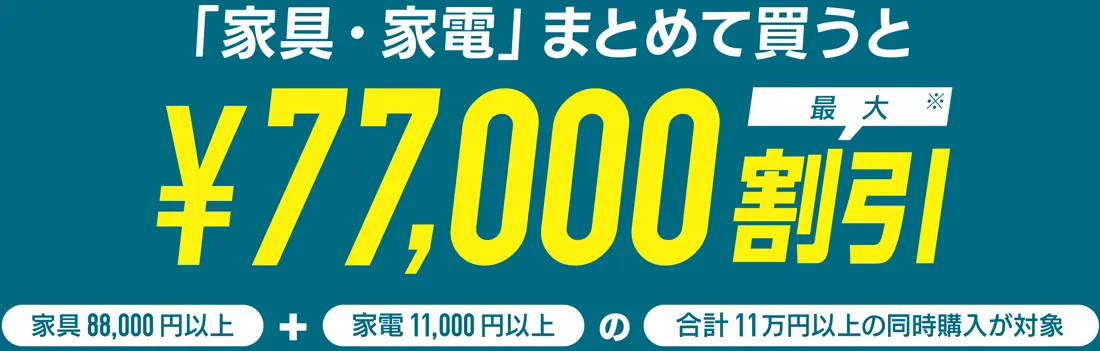※121~132万円未満のご購入の場合、家具は99,000円(税込)以上のご購入が対象となります。